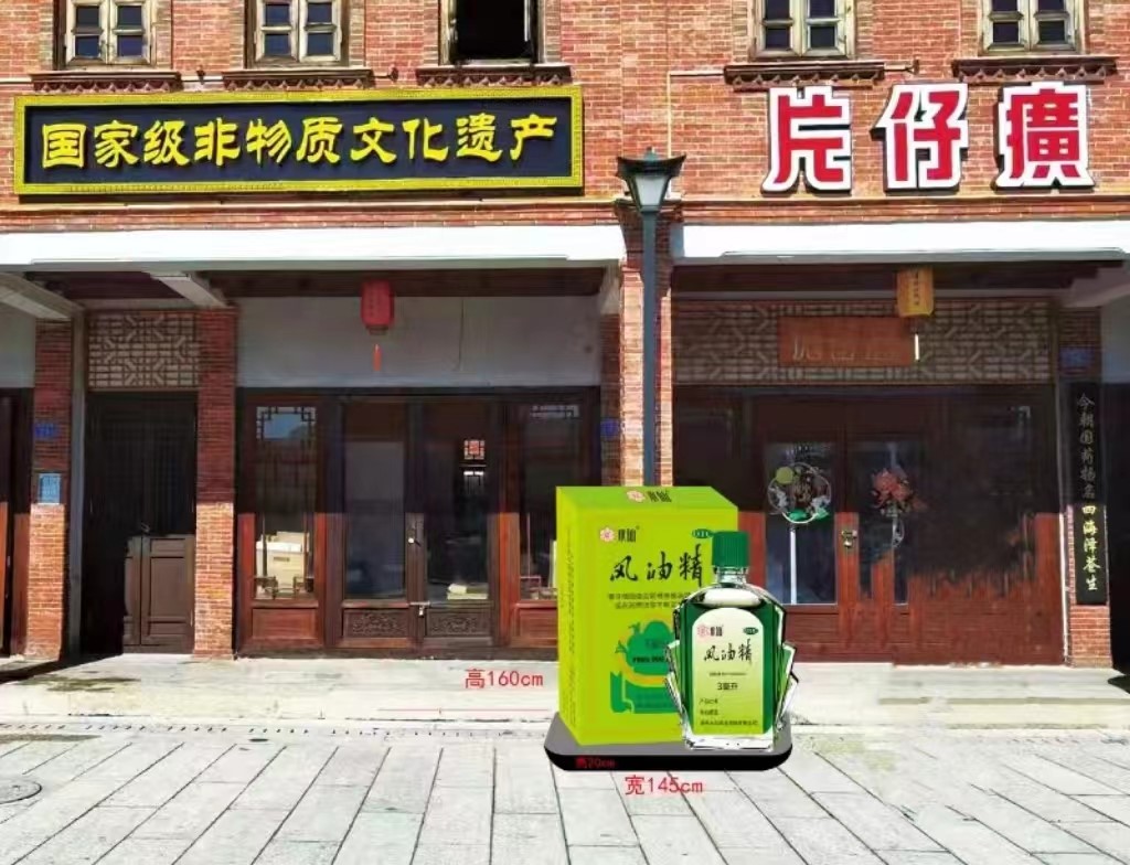 3.摆设制作要求:依据实际风油精瓶身、包装进行规划制作;风油精瓶内空密封,瓶盖可以旋转使用,风油精瓶体可盛装液体;具体比例可参照:高度160cm,宽度145cm,深度60cm,底座高度15cm。(效果图请参考附件一)